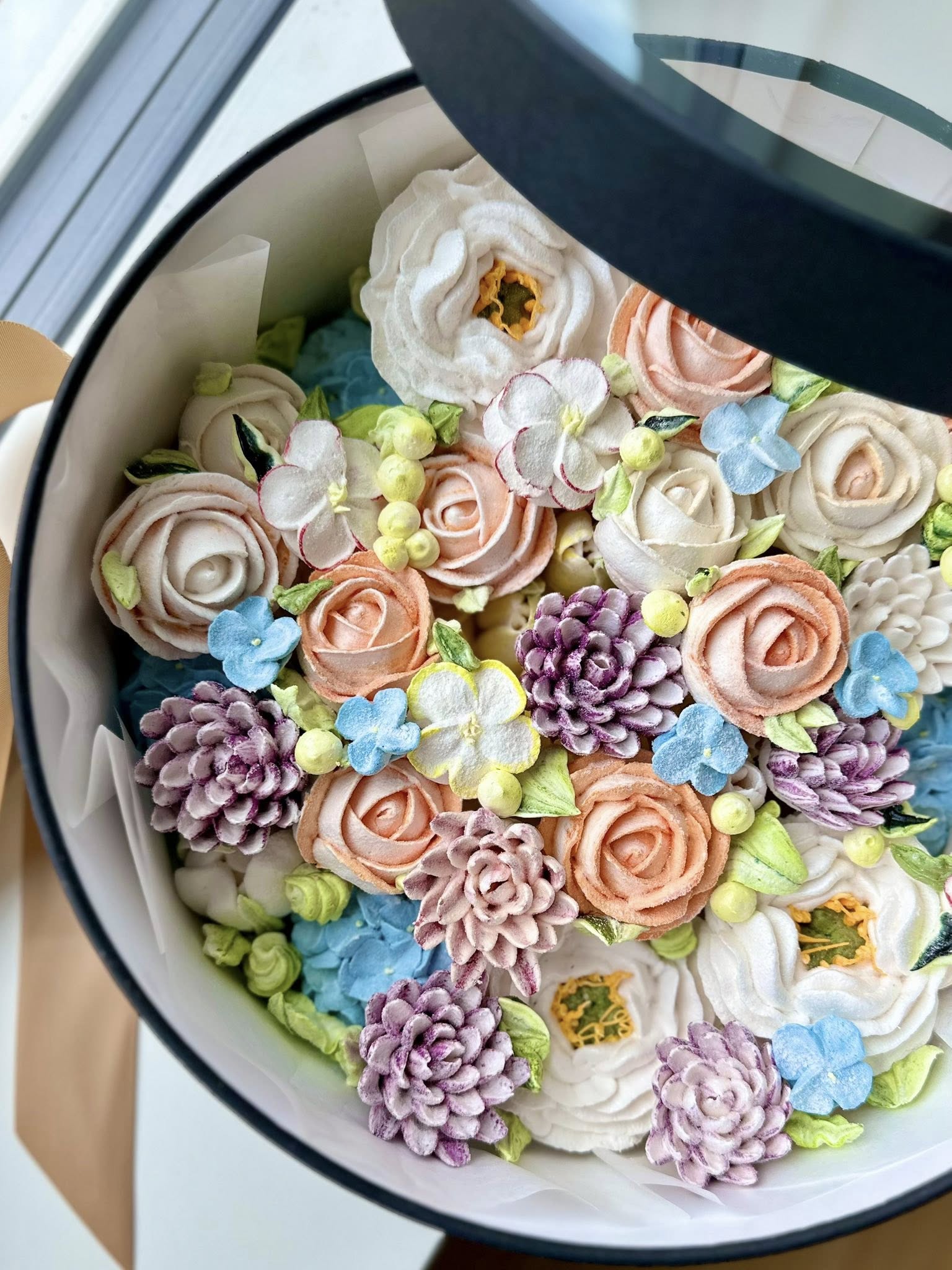 Lisaks on mul valikus ka mustad ümmargused aknaga eriti kvaliteetsed käsitööna valminud karbid Sinu eriti erilisteks kingitusteks. Pildil on karp, mis viidi kingituseks pulma.