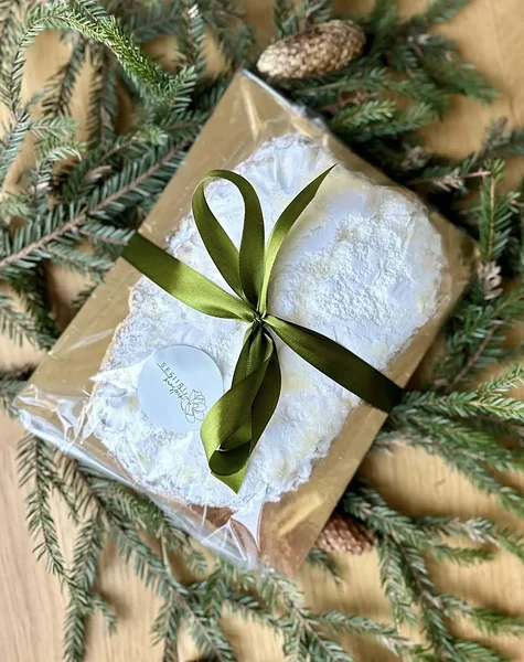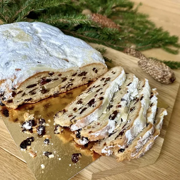 Ma olen elanud 5 aastat Saksamaal ja õppisin seal stollenit armastama. Stollen on kõvem pika säilivusajaga pärmitaignaküpsetis, mis on kaetud sulavõi ja tuhksukruga. Taignas on rosinad, jõhvikad, mandlid, apelsinisukaat ja sarapuupähklikrokant. Lisaks on igas stollenis korralik kogus minu enda valmistatud martsipani. Maailma parim jõulumaius! Säilitada jahedas (nt sahvris) ja säilib vähemalt kuu. Serveeritakse õhukesi ca 1-1,5cm paksuseid viile.
