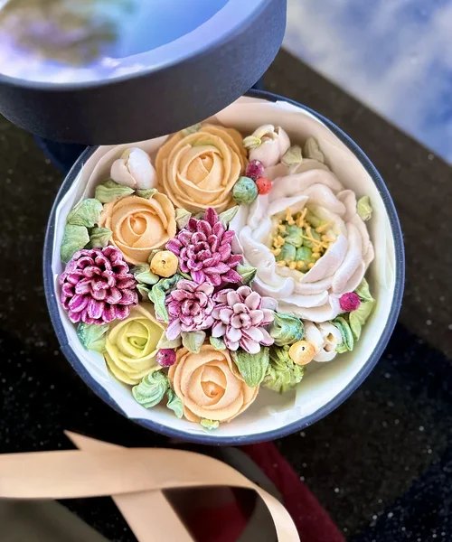 Piltidelt saab inspiratsiooni ja aimu minu käekirjast - kahte päris ühesugust kimpu ja karpi ma ei tee ehk kui Sulle mõni värvikooslus väga meeldib, saan selle inspiratsiooniks võtta ja midagi sarnast luua. Tihti tuleb kliendi poolt suunis kasutatavate värvide eelistuste osas või antakse üldse päris vabad käed. Teinekord on mõistlik ka lisada kellele kingitust otsitakse (mees/naine, vanus jne). Igaks juhuks mainin, et kui tellimusi on rohkem, siis ma alati kõiki erisoove arvesse võtta ei saa ja kombineerin kimbud ja karbid vastavalt võimalustele - seda veel eriti kui tellimus jääb väga viimasele hetkele.