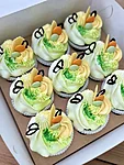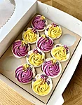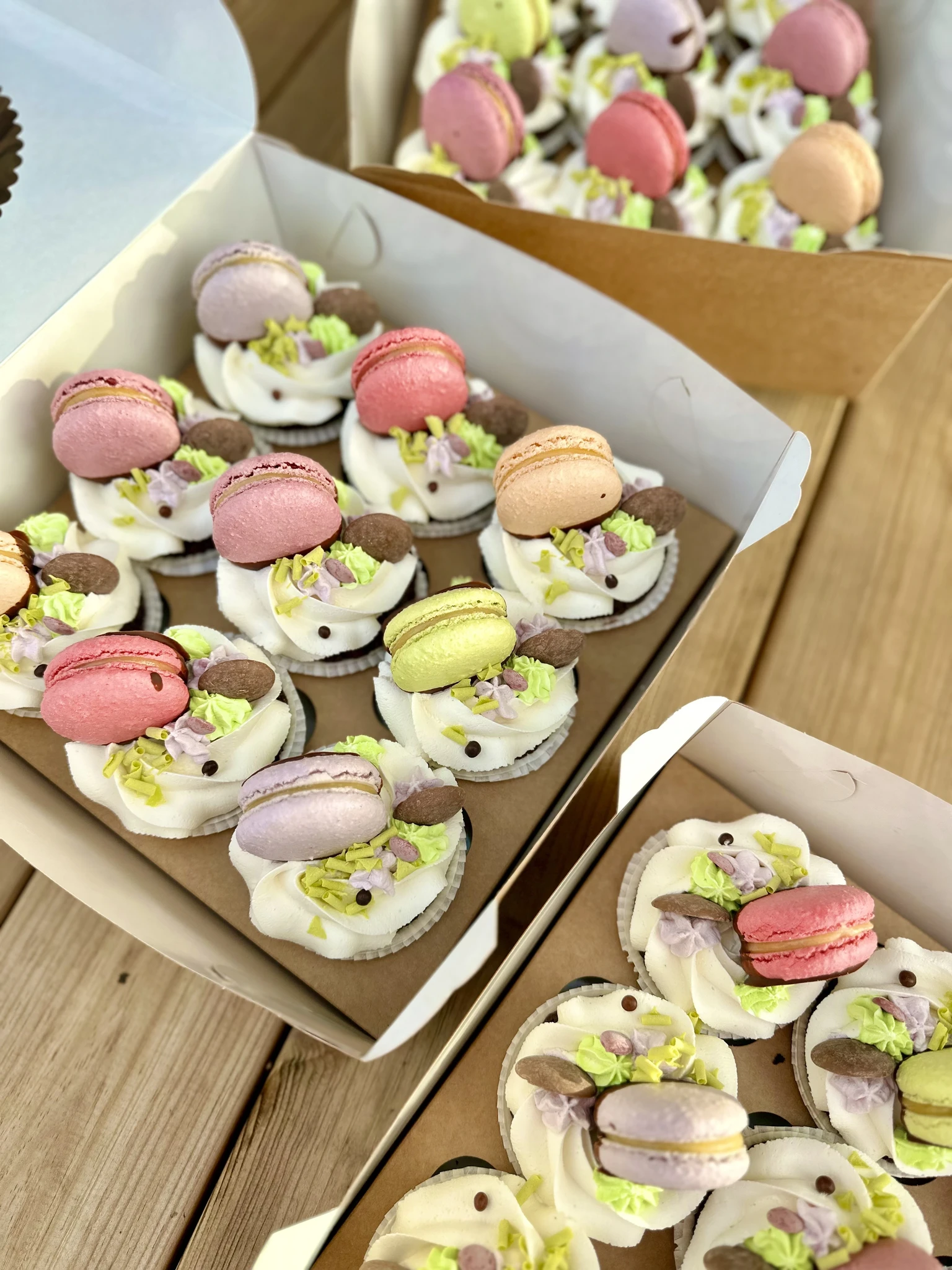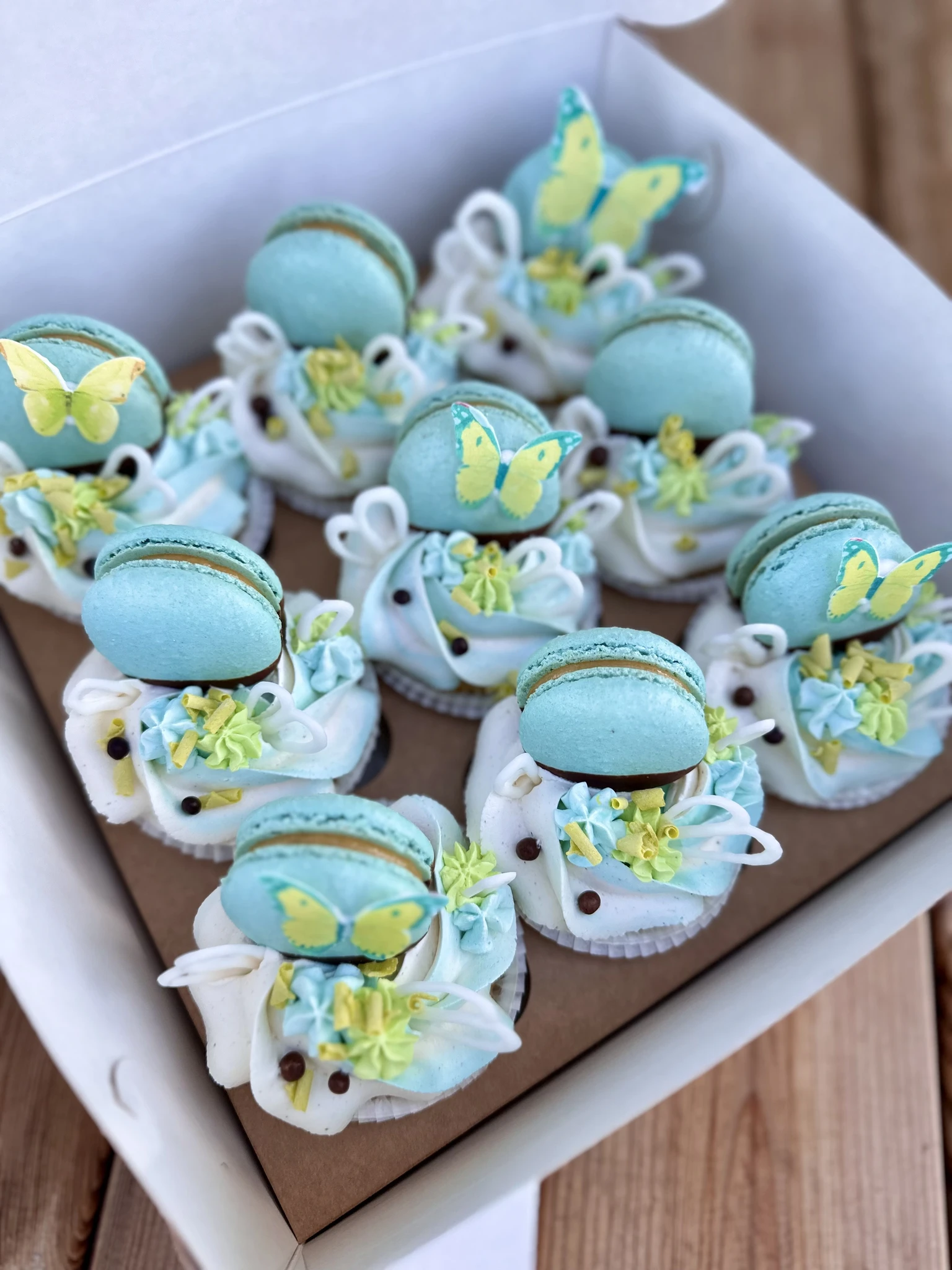 Kui minu sefiirililledega tassikoogid on Bourbon vanilje muffini osaga, siis toorjuustukreemi puhul on valik natukene laiem. Muffini osa saab olla nii Bourbon vanilje kui ka Belgia šokolaadi oma. Kuna kreem ise on oma maitseomadustelt võrdlemisi neutraalne (maitsetan vähese suhkru ja Bourbon vaniljega), siis saab täidiseid ka mitte hapukaid valida - nt soolakaramelli (täpsemalt täidiste kohta saab lugeda hinnakirjast). Toorjuustuga tassikooke ma lilleliselt ei kaunista, samas saab tulemus olla nii väga efektne kui ka lihtsalt ilus - nii nagu vaja. Väga sooja vastuvõtu on saanud mu tassikoogid makrooniga (ja liblikaga), mis ongi nagu unistuste amps asendamaks torti. Sefiirikunstniku tassikoogid on efektsed pilgupüüdjad, ehteks igal peolaual.