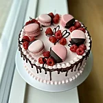 Ma teen ka toorjuustukreemiga uhkeid torte, küll mitte päris nii lillelisi. Toorjuustukreem on oma maitselt võrdlemisi neutraalne (maitsestan vaid vähese suhkru ja Bourbon vaniljega) ehk biskviidi osaks saab valida nii Belgia šokolaadi kui ka Bourbon vaniljet. Ka täidised saab soovi korral mitte hapukaid valida - nt soolakaramelli (täpsemalt täidiste kohta saab lugeda hinnakirjast või küsi mult otse oma eelistuste osas). Toorjuustukreemiga torte kaunistan üldjuhul makroonidega, aga soovi korral saab kasutada söödavat pilti (mina kasutan ainult autoriõigustega müügis olevaid pilte ehk valik on piiratud), marju, küpsiseid-komme jmt. Loomulikult saab selliseid torte ka pritsitehnikas kaunistada, sh väiksemate lilledega. Toorjuustukreemiga tordid on mul nö moodsad tordid ehk kõrged.